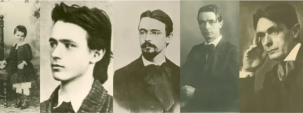 Leopoldine Steiner (izq). Rudolf Steiner (der). Rudolf Joseph Lorenz Steiner nació el 27 de febrero de 1861 en Kraljevec, luego Hungría, ahora Croacia. Pasó su infancia en Pottschach. Allí, su padre trabajó como telegrafista en El ferrocarril del sur de Austria. La familia vivía en el edificio de la estación, directamente en las vías del tren. Este entorno le permite experimentar la polaridad de la naturaleza y la tecnología.